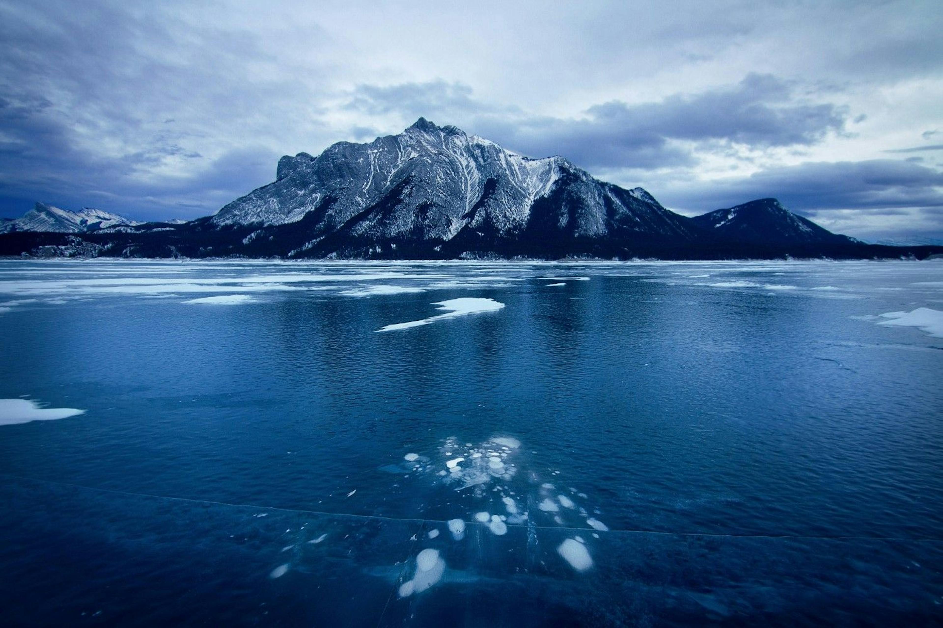 If you really want to level up your adventure, book a helicopter tour over the Canadian Rockies. Fly over Abraham Lake, and you might catch sight of one of the Rockies’ most surreal winter wonders: perfectly preserved methane bubbles suspended in crystal-clear ice. After landing, you can join a guided walk onto the lake and see the phenomenon up close. It’s a special and unique experience.