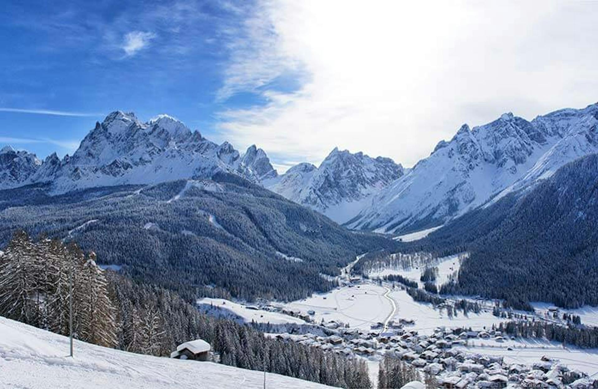 The Three Peaks region links five ski mountains with fast gondolas, reliable snowmaking and a layout that feels spacious and uncrowded. The main hub sits around Monte Elmo and Croda Rossa, with nearly 90 kilometres (56 miles) of slopes connected by modern lifts and more than 1,000 metres (3,280 feet) of vertical. Additional beginner zones at Versciaco, Waldheim and Monte Baranci widen the terrain mix and make the resort easy for every style of skier.