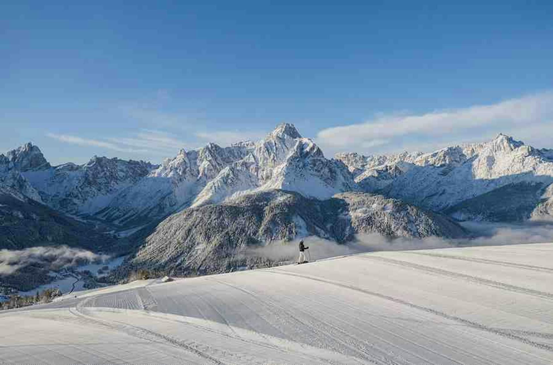Three Peaks Dolomites offers room to explore, scenery you will remember, and terrain that suits every skier in the group.